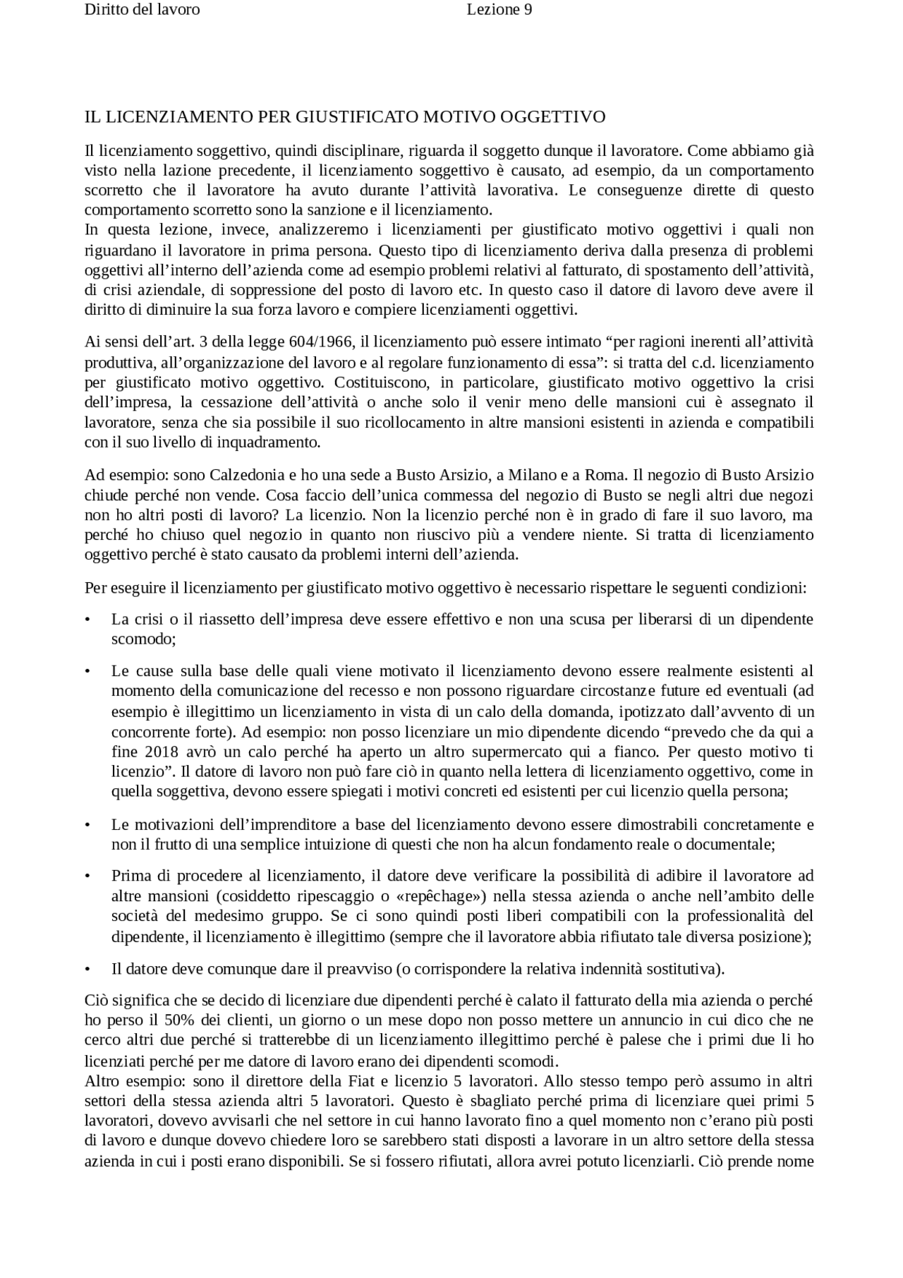 Lettera licenziamento per giustificato motivo oggettivo meno di 15 dipendenti