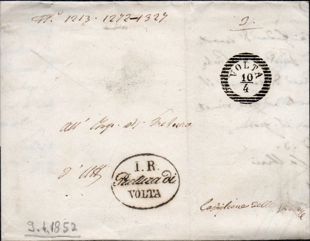 1838, "per Espresso di Ritorno", annotazione manoscritta su lettera da Villa di Villa 21.11.1838 per Villa Bartolomea, accettata e consegnata brevi ...