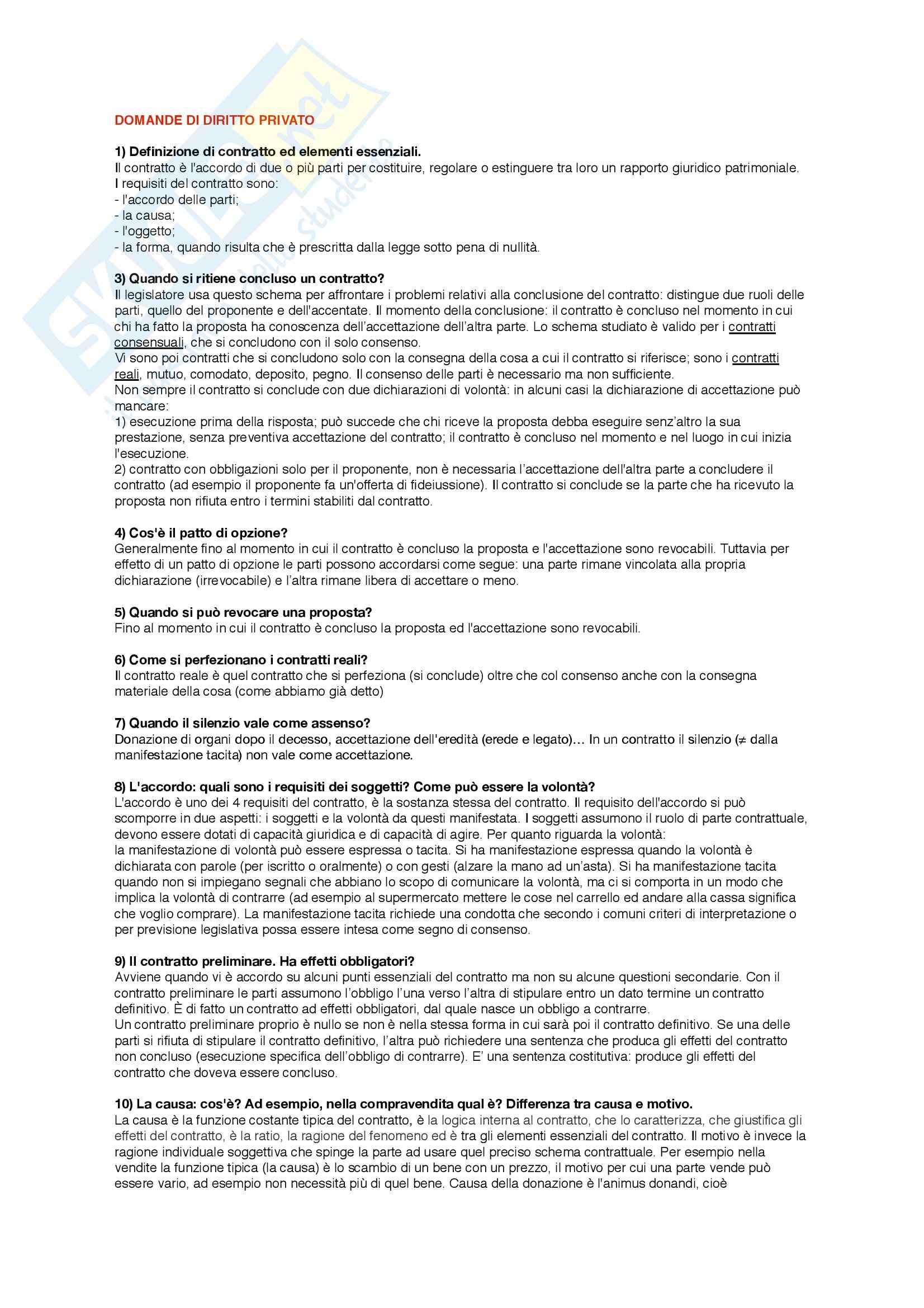Domande dell'esame di diritto privato